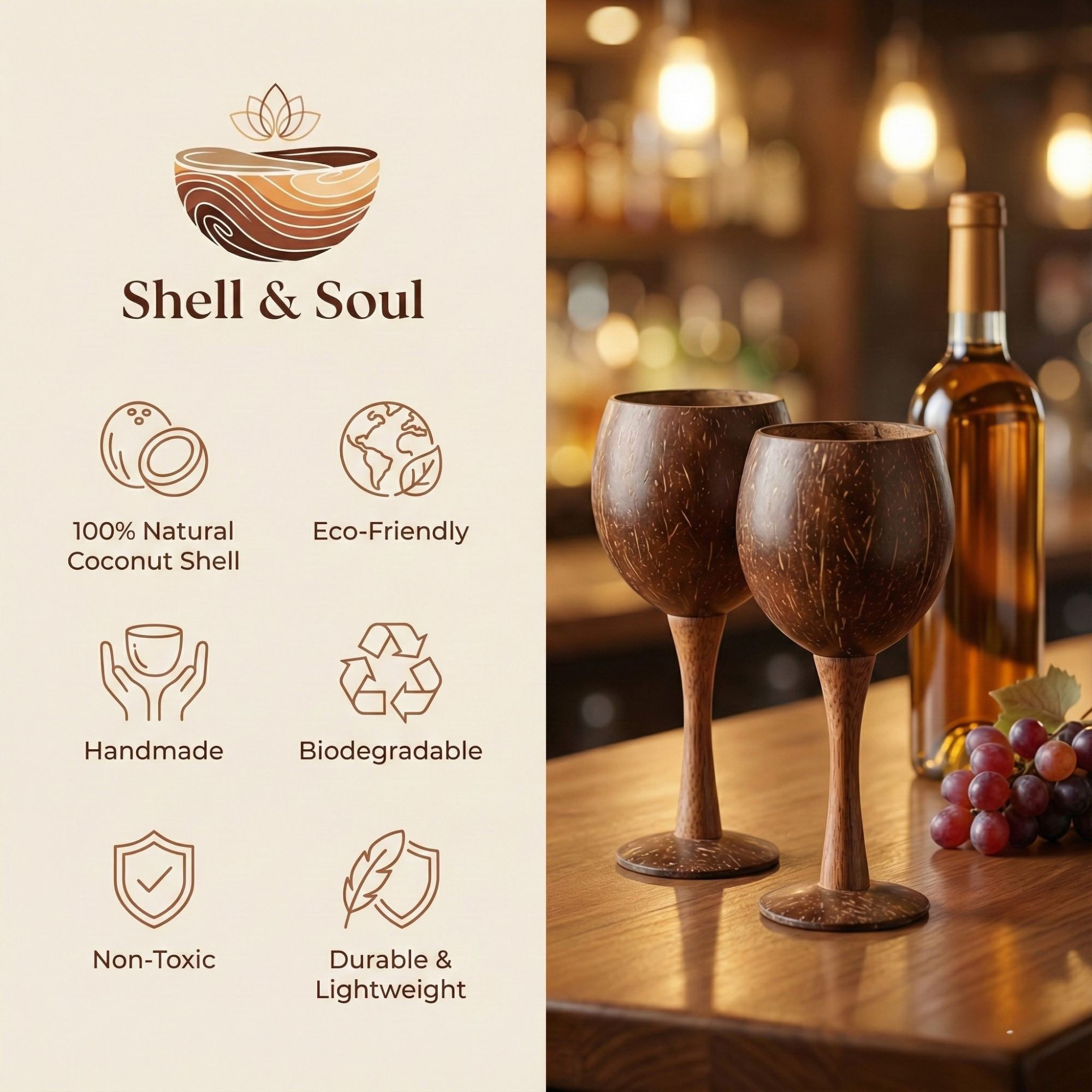 shell & soul handmade coconut shell wine glass (200–250 ml) | eco friendly natural drinkware | sustainable, food safe, chemical free | premium artisan wine goblet about this item 🌿 handcrafted from natural coconut shell