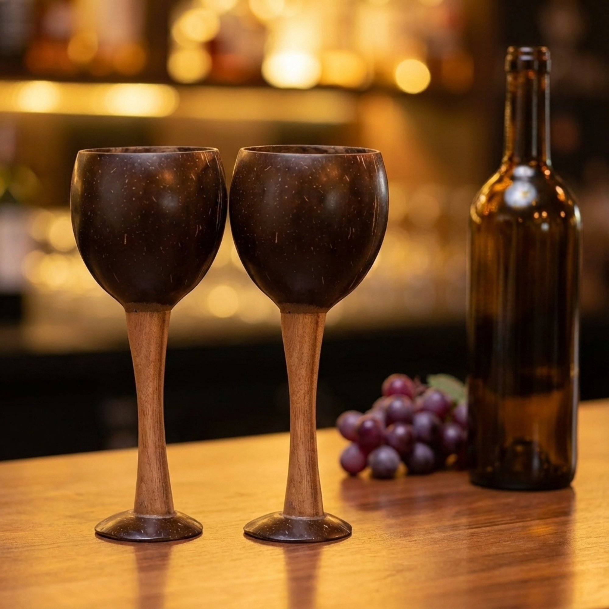 each wine glass is carefully handmade from real coconut shells, giving every piece a unique texture, grain, and natural finish. 🍷 elegant & functional design